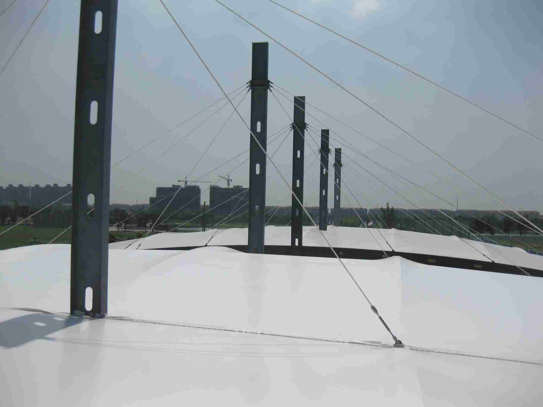 污水池膜加盖结构的核心在于通过膜覆盖的方式,将原有的传统水处理设施与现代化的膜分离技术相结合,实现对污水的有效净化和资源回收利用。这种结构的最大优势是提高了污水处理效率,减少了能源消耗和水资源浪费。